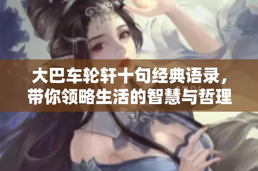 大巴车轮轩的经典台词总能引发共鸣,其中许多句子深入人心。这些句话不仅反映了生活的哲理,也蕴含了丰富的人生经验。比如,“旅途的每一步都是成长的印记”,提醒我们珍惜每一次的经历。通过这些经典语录,观众能够收到来自生活的启示,引发深入思考,启发自己的人生道路。
